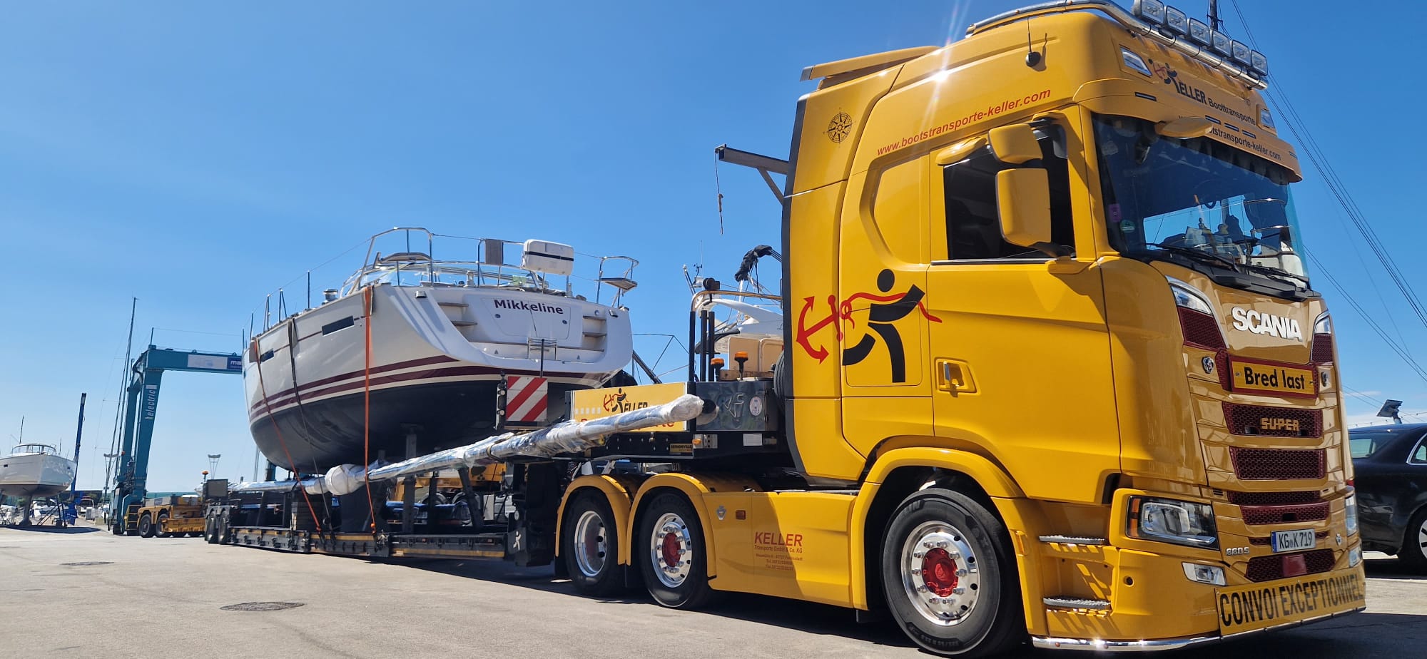 Thanks to the expertise of Boottransporte Keller, a BAVARIA R55 was sent on an impressive journey: from the Danube via narrow roads and highways to the Côte d'Azur. With the highest standards of precision, the team mastered all logistical challenges – including a length of over 26 meters and a height of 4.5 meters. Boottransporte Keller ensured timely and smooth handling and an unforgettable handover experience to the new owner on the French Mediterranean coast. You can find the full story here.
